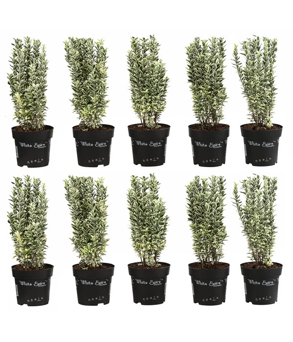 Sie sind schon länger auf der Suche nach einer schönen Heckenpflanze, die Sie als Abgrenzung zum Gehweg an der Straße setzen möchten? Die Hecke soll nicht riesig hoch werden und auf jeden Fall leicht zu pflegen sein. Und attraktiv aussehen soll sie natürlich auch. Außerdem möchten Sie keine Pflanze, die Sie schon in vielen Nachbarsgärten gesehen haben. Ein unerfüllbarer Wunsch? Keineswegs, denn wir haben hier genau die richtige Pflanze für Sie: Den Spindelstrauch ‘White Spire‘! Das ist eine neue, noch wenig bekannte Sorte, der alle Gartenexperten aber eine große Zukunft prophezeien, denn das Ziergehölz punktet auf jeder Dimension. Seine grünen Blätter sind ausnahmslos mit einem strahlend weißen Rahmen gefasst und diesen Blattschmuck wirft der Strauch auch in den Wintermonaten nicht ab. Außerdem ist er pflegeleicht und begnügt sich mit einer moderaten Wuchshöhe von maximal 100-150 cm. Klingt super, nicht wahr? Dann verwirklichen Sie gleich Ihr Heckenprojekt und holen sich die 10 Pflanzen für 2 Meter Spindelstrauch ‘White Spire‘!