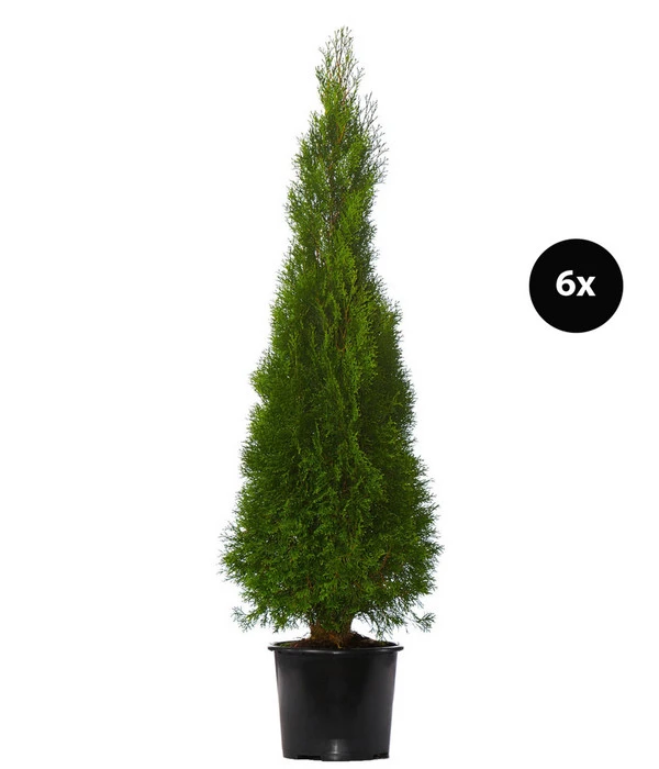 Sie bilden einen dichten Sicht- und Lärmschutz zum Nachbarsgrundstück, sie geben einer Gartenanlage Struktur und können als Solitär die Blicke auf sich lenken. Und immer schwingt ein Hauch mediterranes Flair mit, denn die immergrünen Koniferen erinnern mit ihrem schlanken, aufrechten Wuchs an die imposanten Zypressen, die im Mittelmeerraum zu Hause sind und dort das Gesicht ganzer Landschaften prägen. Mit dem Lebensbaum ‘Smaragd‘ haben Sie eine der schönsten und beliebtesten Koniferen entdeckt, die vor allem als undurchdringliche Sichtschutzhecke geschätzt wird. Deshalb haben wir hier ein Paket aus 6 gesunden, kräftigen Pflanzen für Sie, die bereits eine stattliche Höhe von 150-175 cm erreicht haben und schnell die ihnen zugeteilte Aufgabe in Ihrem Garten erfüllen werden. Wenn Sie also das ganze Jahr auf eine wunderschön frischgrüne Hecke blicken möchten, nehmen Sie die 3 Meter Lebensbaum ‘Smaragd‘!