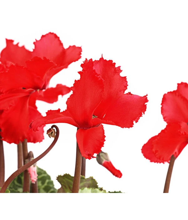 Das Zimmer-Alpenveilchen, oder auch Persisches Alpenveilchen genannt, gehört zu den bekanntesten Zimmerpflanzen, das lange Zeit als altmodisch und ‚Omas Liebling‘ bezeichnet wurde. Das hat sich längst geändert, denn die farbenfroh blühenden Pflanzen mit großen herzförmigen Blättern verbreiten einen fröhlichen Charme und ist beliebt wie eh und je. Die auffälligen Blüten sitzen an langen Stielen über der Pflanze. Die Farbenvielfalt der Alpenveilchen reicht dabei von Weiß über Rosa- und Rottöne bis hin zu Lila. Eine echte Besonderheit unter den Alpenveilchen sind die Pflanzen mit den gewellten Blüten. Diese fallen aber nicht nur durch ihre wunderschöne verspielte Blütenform aus der Reihe, sie sind noch dazu besonders groß und sehr farbintensiv.
