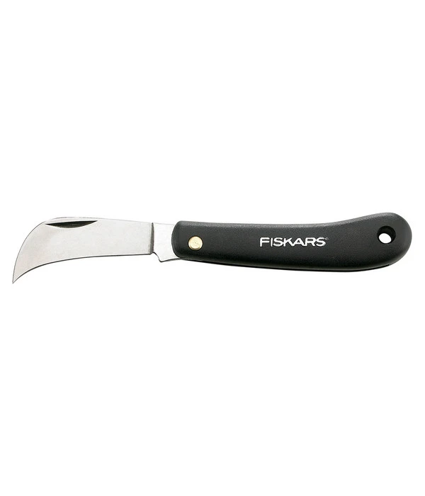 Mit der Fiskars Gartenhippe haben Sie als Gärtner das optimale Taschenmesser für Ihr Hobby gefunden. Mit der Gartenhippe können Sie besonders präzise Blumenschnitte durchführen, Stecklinge schneiden oder auch Okulationen bei Rosen oder Obstgewächsen vornehmen. Um die Handhabbarkeit zu erleichtern, ist die Schneide gebogen, sie läuft spitz zu und ist einseitig geschliffen. Auch der Griff liegt angenehm in der Hand. Die hochwertige, polierte und gebogene Stahlklinge (HRC 58) ist versenkbar und mit ihrer praktischen Größe passt die leichte Gartenhippe von Fiskars in jede Jacken- oder Hosentasche.