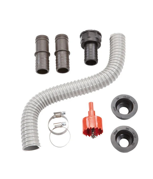 Damit Sie gleich mit dem Anschluss Ihres Fallrohrfilters beginnen oder mehrere Regentonnen miteinander verbinden können, ist beim Garantia Verbindungsset Flex-Comfort das umfangreiche Montagezubehör gleich mit dabei. Herzstück des Garantia Verbindungsset Flex Comfort ist der 40 cm lange, superflexible Schlauch. Aber auch der praktische Kronenbohrer, Schlauchtülle, je zwei Anschlussstutzen, Zulaufdichtung und Schlauchschelle sind beim Garantia Verbindungsset Flex-Comfort im Lieferumfang inbegriffen.