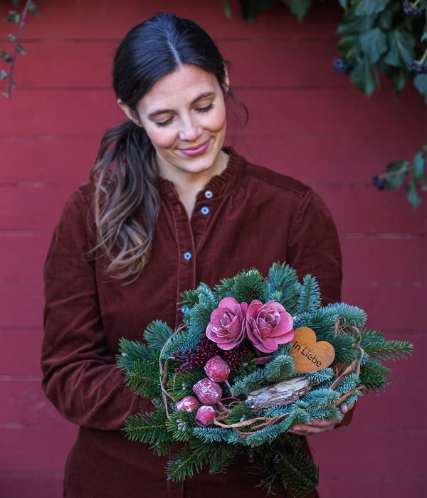 Abschied nehmen ist nicht leicht und wenn es der Abschied auf ewig ist, fehlen uns oftmals die richtigen Worte. Da ist es hilfreich, dass erfahrene Floristen wissen, wie man Gefühle der Liebe, der Dankbarkeit und innigen Verbundenheit auch über den Tod hinaus ohne Worte ausdrücken kann. Zum Beispiel mit den Grabstrauß in Liebe, der extra für die Feiertage Allerheiligen, Allerseelen und Totensonntag kreiert wurde. Die Zeit, die der inneren Einkehr und des Gedenkens an die Toten gewidmet ist. Auf einem Bett aus immergrünen Nobilis- und Kiefernzweigen wurden hübsche Eukalyptusglocken und zwei edle Rosenblüten arrangiert, die schon seit Jahrhunderten als das wohl schönste Symbol der Liebe gelten. Ergänzt wird das stimmungsvolle Bouquet mit einem kleinen Metallschild mit Edelrost-Patina, als wollte es zeigen, dass zwar Metall rostet, aber nicht die wahre, ewige Liebe. Schmücken Sie in diesem Jahr das Grab Ihrer Lieben mit dem Grabstrauß in Liebe und Sie können sicher sein, dass es den ganzen Winter bis ins Frühjahr gut aussehen wird.