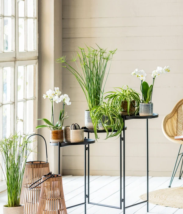 Manche Pflanzen müssen sich nicht mit spektakulären Blüten schmücken, um uns ans Herz zu wachsen. Grünlilien z.B. haben nur eher unscheinbare Blüten und doch gehören sie zu den beliebtesten Zimmerpflanzen. Denn quasi als Ausgleich schmücken sie sich mit schwertförmigen, langen, grünen Blättern, die alle mit einem weißen Rand verziert sind, was der Pflanze eine wunderschön frische Note verleiht. Die Grünlilie ‘Bonnie‘, die wir Ihnen hier zeigen, gefällt sich außerdem darin, die elegant überhängenden Blätter zusätzlich in leichte Wellen zu legen. Setzen Sie die Grünlilie ‘Bonnie‘ in eine Hängeampel oder Sie stellen sie auf ein Fensterbrett, ein hohes Regal oder eine Pflanzentreppe und lassen sie dort ihren grün-weißen Charme verbreiten. Und genießen das beruhigende Gefühl, sich für eine der unkompliziertesten Blattschmuckpflanzen entschieden zu haben
