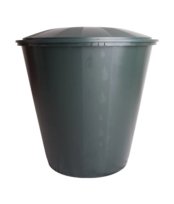 Kunststoff-Regentonne mit Deckel, rund, dunkelgrün