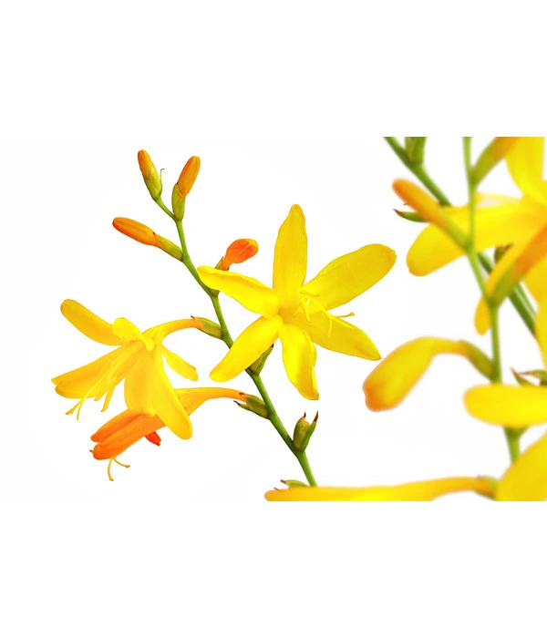 Die Crocosmie, wie die Montbretie auch heißt, stammt ursprünglich aus Südafrika, wo das Klima milder und trockener ist als bei uns. Obwohl die neueren Züchtungen die früher eher frostempfindliche Pflanze recht robust gemacht haben, bevorzugt die Prachtstaude immer noch einen warmen, sonnigen Standort im Garten. Empfehlenswert ist überdies ein leicht saurer, durchlässiger Boden für ein gutes Gedeihen. Staunässe sollte möglichst vermieden werden. Gerne steht die Crocosmie vor Hecken oder höheren Stauden, wo sie es warm hat und überdies windgeschützt ist. Außerdem heben sich ihre leuchtenden Blüten dann besonders wirkungsvoll vor dem dunkelgrünen Hintergrund ab. Gute Nachbarpflanzen sind für die Montbretie generell alle trocken- und wärmeliebenden Stauden und Kleingehölze wie Edeldisteln, Wolfsmilch, Sommerastern und Bartblumen.