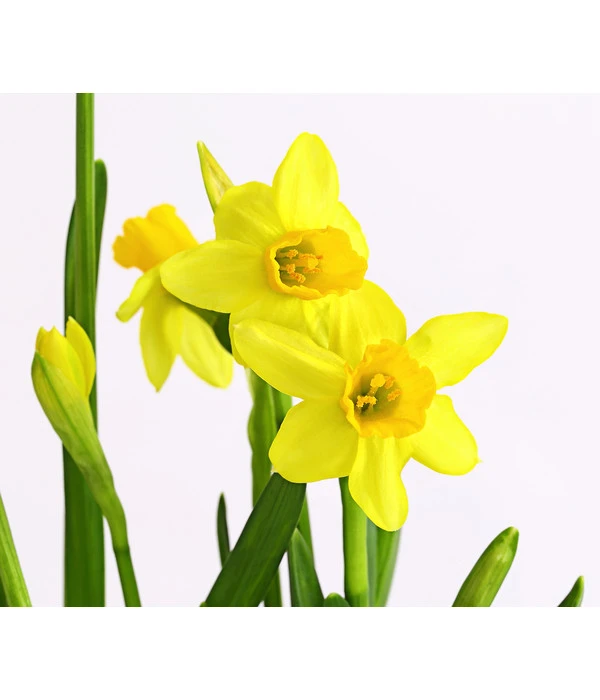 Wer nun denkt, die ‚Tête à Tête‘-Narzissen seien das einzige Highlight dieses Arrangements, der irrt. Auch die Zinkschale ist ein Hingucker und wenn Sie die Blumenzwiebeln irgendwann aus der Schale nehmen möchten, leistet das Gefäß Ihnen weiterhin treue Dienste. In so eine Zinkschale passen nach den Narzissen natürlich andere Blumen, Sie können sie aber auch für Trockenblumen-Arrangements nutzen oder im Winter darin einen kleinen Adventskranz gestalten. Haben Sie schon eine Idee, wo Ihre Zinkschale mit Narzissen stehen soll? Dann sichern Sie sich Ihr Exemplar gleich oder rahmen Sie direkt mit mehreren Schalen den Eingangsbereich ein.