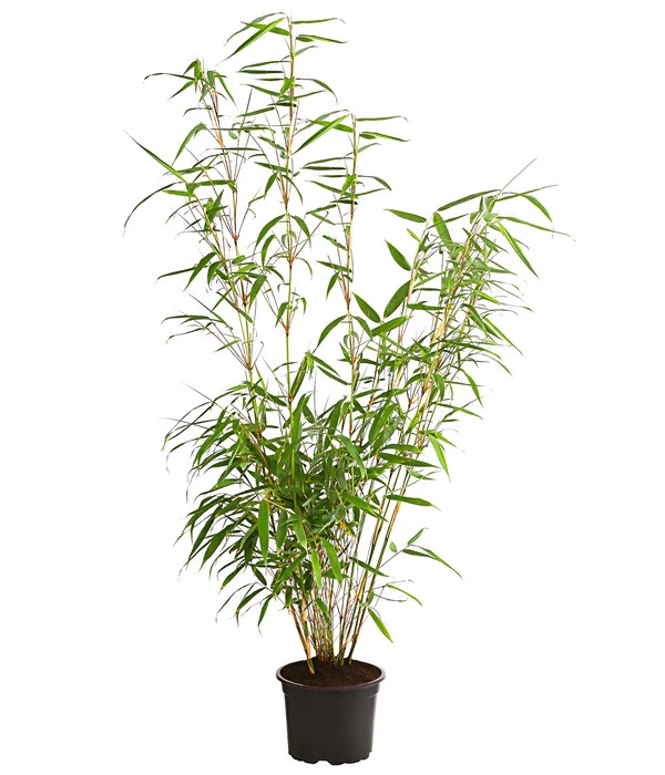 Imposanter Wuchs, exotische Optik, unkomplizierter Charakter – kein Wunder, dass sich der Gartenbambus bereits in so vielen Gartenanlagen zur Schau stellen darf. Ganzjährig präsentiert er seine saftig grünen, glänzenden Blätter, als gäbe es keinen Herbst und keinen kalten Winter. Einen dekorativen Kontrast zu dem grünen Laub bilden die Halme, die erst grüngelblich sind und sich später rötlich-braun bis dunkel-violett einfärben. Sie haben gehört, dass Bambus blühen kann und dann eingeht? Ja, die Bambusblüte ist eine geheimnisvolle und noch nicht endgültig erforschte Sache. Sicher ist, dass Bambus sehr selten, manchmal erst nach 120 Jahre blüht, und dann weltweit zum gleichen Zeitpunkt. Die letzte Bambusblüte war 2008. Und sicher ist auch, dass der Schirmbambus bei Ihnen üppig wachsen und dichte Horste bilden wird, die eine Höhe von 300-400 cm erreichen können. Oder haben Sie etwa einen kleinen Panda in Ihrem Garten, der Ihren neuen Gartenbambus mit Begeisterung verspeisen wird? Wenn nicht, bereichern Sie Ihre Gartenanlage gleich mit einem Schirmbambus.