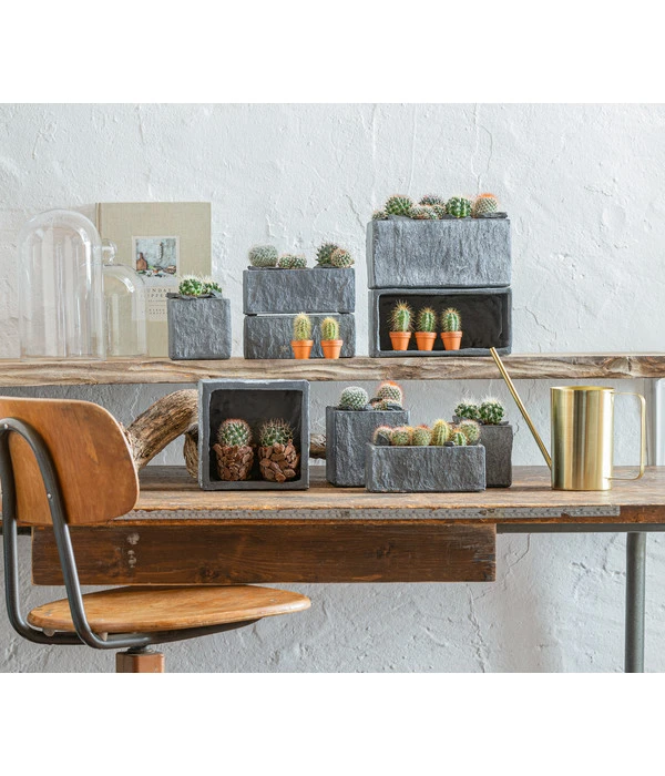 Sie würden mit Ihren stacheligen Lieblingen aus dem Warzenkaktus-Mix gerne etwas anderes machen, als einfach ein Fensterbrett zu bestücken? Dann wählen Sie doch eine schöne, flache Tonschale, die Sie mit Kakteenerde füllen, um Ihre Schützlinge hinein zu pflanzen. Das wirkt wie eine Miniaturlandschaft und wird mit Dekokies oder einfach Sand noch attraktiver. Und das Beste: Wenn Ihnen danach ist, stellen Sie Ihr kleines Kakteenparadies mit einem einzigen Handgriff um.