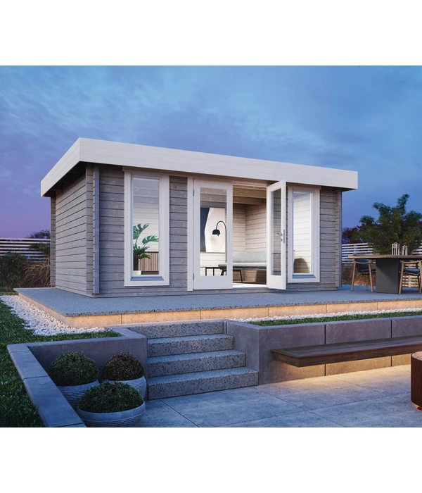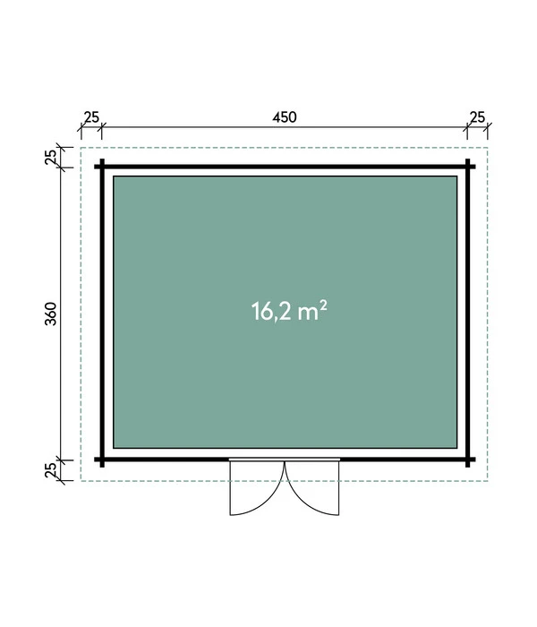 16,2 m², 70 mm Wandbohlen, Pultdach, Isolierverglasung