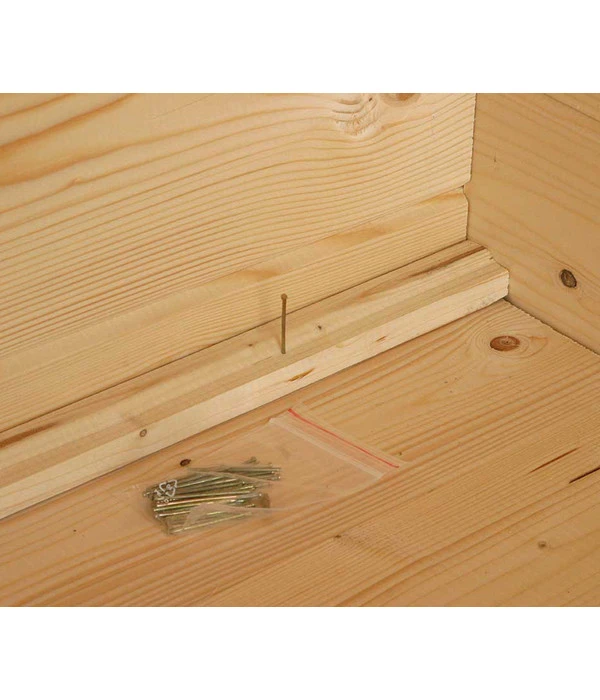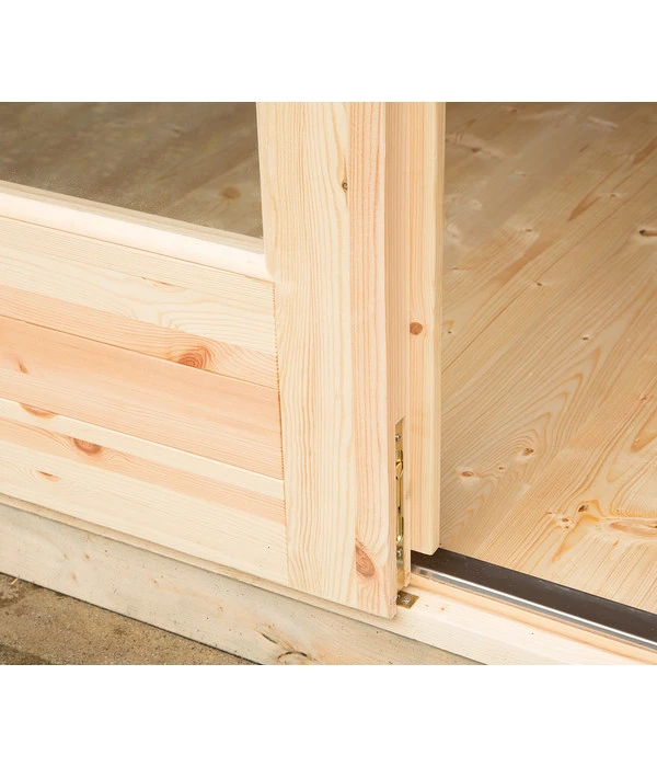 Dank seiner robusten Bauweise aus Fichtenholz mit 70 mm starken Wandbohlen schützt Sie das Material im Sommer wie auch im Winter vor extremen Temperaturen. Mit einer zusätzlichen Heizquelle lässt sich das Holzhäuschen so das ganze Jahr optimal nutzen. Ergänzt wird das Design durch zwei bodentiefe, isolierverglaste Fenster an der Frontseite, die zum einen für ausgewogene Temperaturen und zum anderen für viel Licht und einen schönen Ausblick sorgen. Das Gartenhaus ist nicht nur für gemütliches Beisammensein oder für entspannte Stunden wie geschaffen, es stellt auch eine willkommene Alternative zum klassischen Homeoffice mit Blick ins Grüne dar. Die seitliche Überdachung lässt sich ebenso vielseitig einsetzen und bietet sich zudem für rankende Begrünungen an, die eine harmonische und natürliche Ausstrahlung erzeugen.