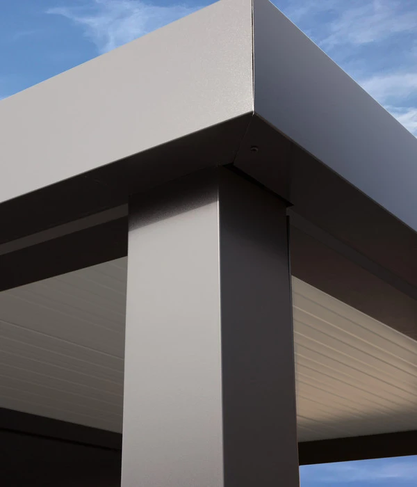 Der Designer, der das Wolff Finnhaus Metallgerätehaus Eleganto 2424 entworfen hat, war mit einem attraktiven Gerätehaus noch nicht zufrieden. Er verlängerte das Flachdach, um so mit Hilfe der beiden Säulen einen multifunktionalen Unterstand zu schaffen. Dort können Sie Ihre Fahrräder genauso gut unterstellen, wie den Kinderanhänger oder Ihren Gasgrill. Aber selbstverständlich können Sie sich auch gemütlich mit Ihrem Grillteller unters Dach zurückziehen, wenn ein Regenschauer Sie überrascht. Mit anderen Worten: das Seitendach passt sich gerne Ihren Bedürfnissen an.