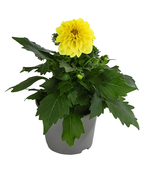Die Fülle an Blütenblättern, die sich perfekt aneinander reihen, und der gleichmäßige, kompakte Wuchs machen diese Beet- und Balkonpflanzen so attraktiv. In einem dekorativen Topf wird sie bis in den Herbst hinein auf der Terrasse oder dem Balkon einen beeindruckenden Blickfang bilden. Aber auch im Gartenbeet oder auf einem Grab ist die Dahlie ein bezaubernder Sommerschmuck. Da sie sich hervorragend als Schnittblume eignet, können Sie sich immer wieder einen Dahlienstrauß ins Zimmer holen – mit dem schönen Nebeneffekt: Je öfter Sie schneiden, desto üppiger wird die Dahlie blühen.